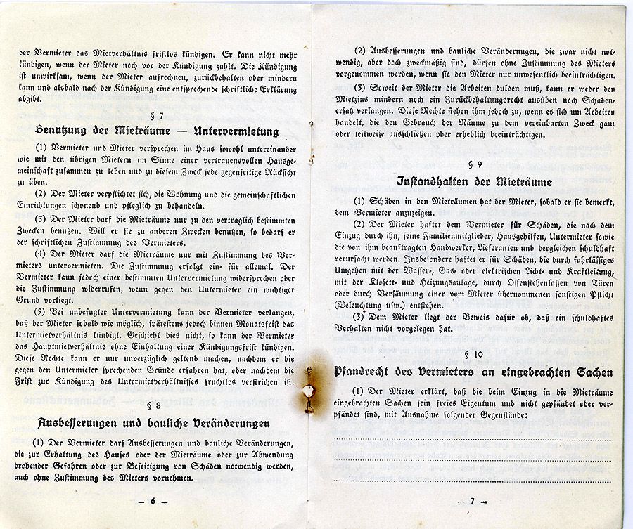 Und so sah der Einheitsmietvertrag des Jahress 1939 aus.