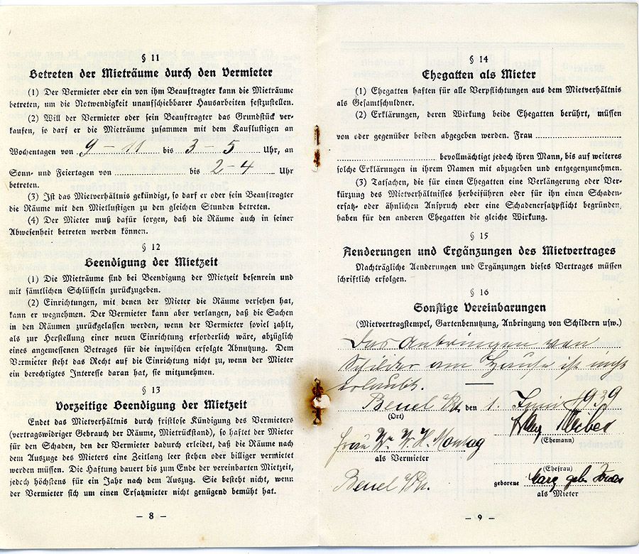 Und so sah der Einheitsmietvertrag des Jahress 1939 aus.
