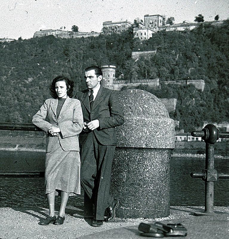 Das Modelpaar steht an der Spitze vom Deutschen Eck in Koblenz für einen Fototermin bereit.