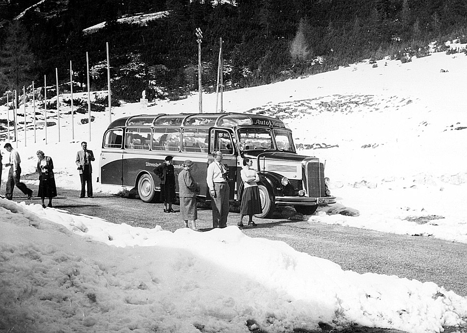 Der schöne Mercedes-Bus hat die Reisegruppe in den Schnee gebracht