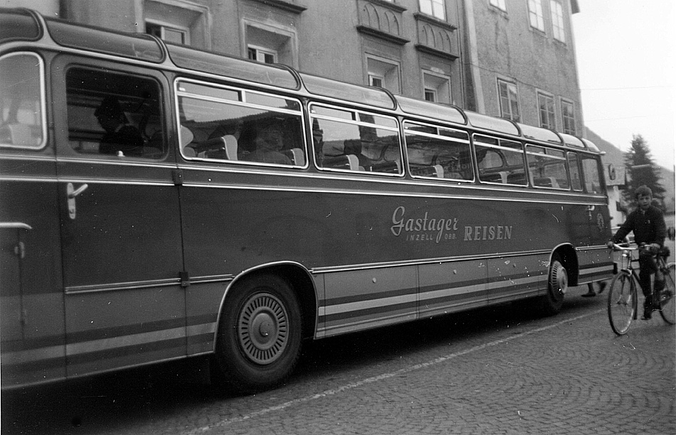 Die Türen sind geschlossen, so dass die Fahrt mit Magirus-Bus beginnen kann
