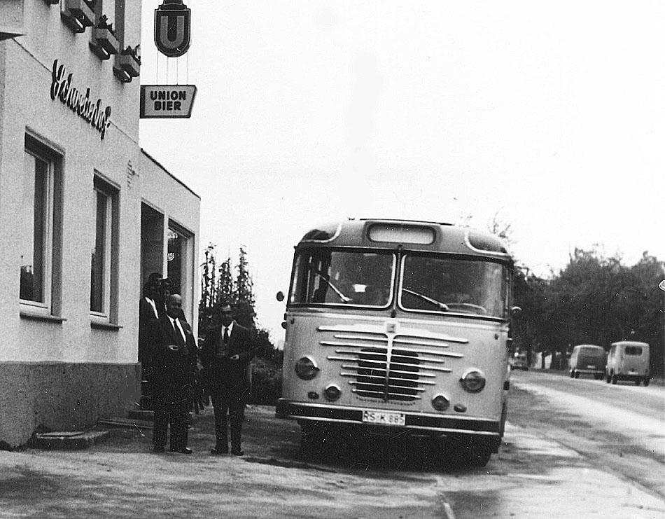 (Ausschnittsvergrößerung) Nach einer Kaffeepause geht die Busreise nun weiter
