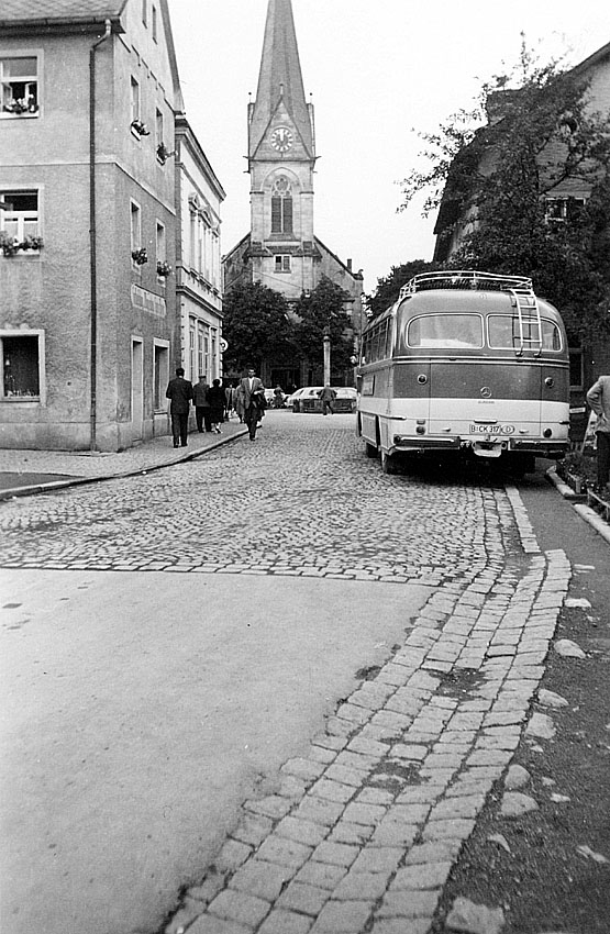 Nach langer Fahrt ist der Berliner Mercedes-Bus 1957 in Bischofsgrün angekommen.