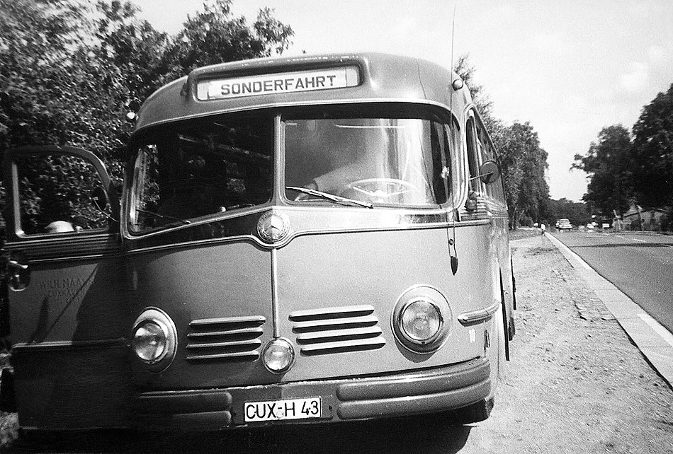 Zu einer kleinen Rast (PP) ist dieser Bus vom Typ Mercedes 6600 H rechts rangefahren