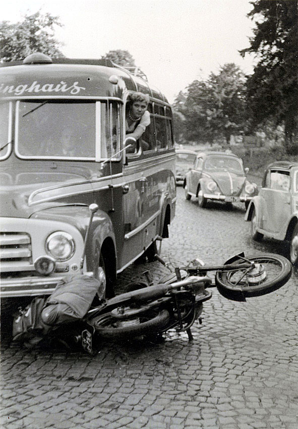 Dieser Opel Blitz mit Aufbau von Voll hat einem Zweiradfahrer nicht ausweichen können