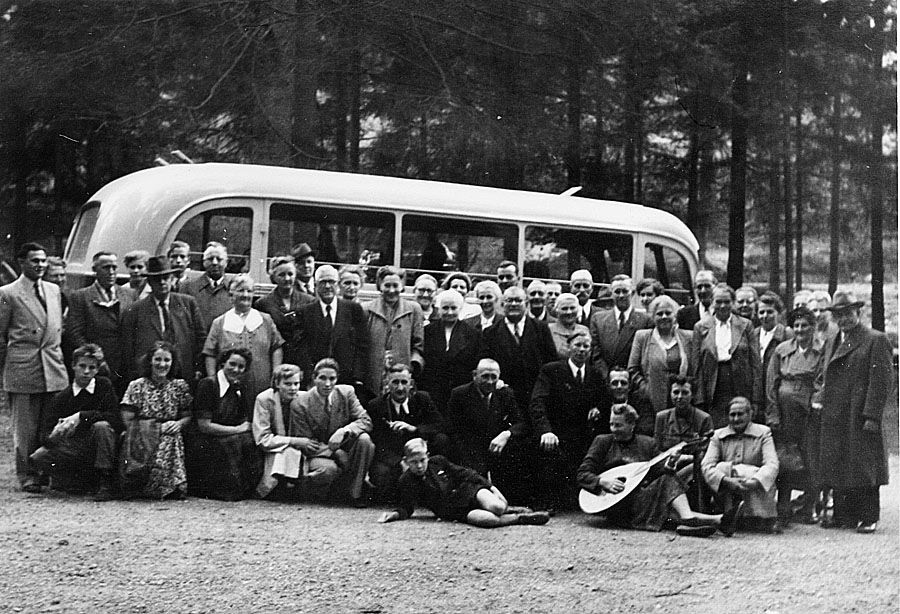 Wie mag der Reisebus unbekannten Fabrikates aussehen, mit dem der Gesangverein zum Ausflug aufgebrochen war.