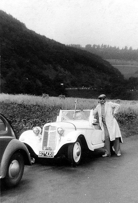 Stilecht wird dieses Adler Trumpf Cabrio präsentiert.