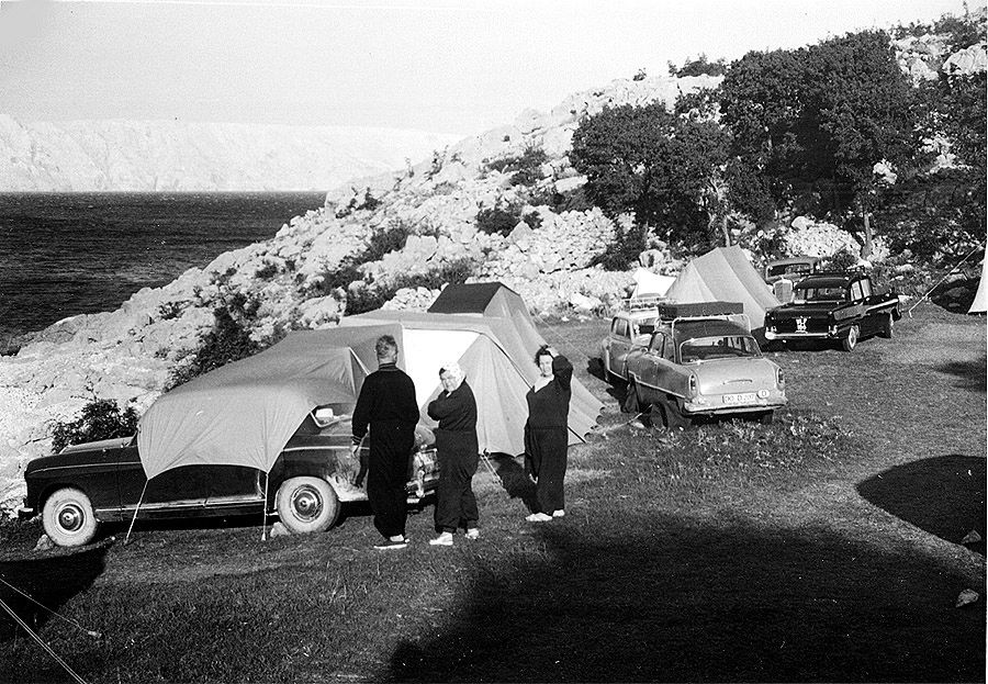 Zwischen Mercedes, DKW und "Nobelschlitten" Vauxhall Victor hat sich ein Ford 12m zur Nachtruhe eingereiht.