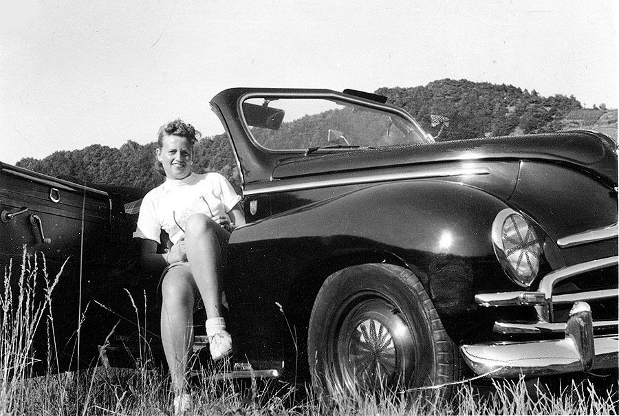 Cousine im schönen Taunus Cabrio. Ein Enkel hat das Bild schon mit dem Filzstift "bearbeitet".