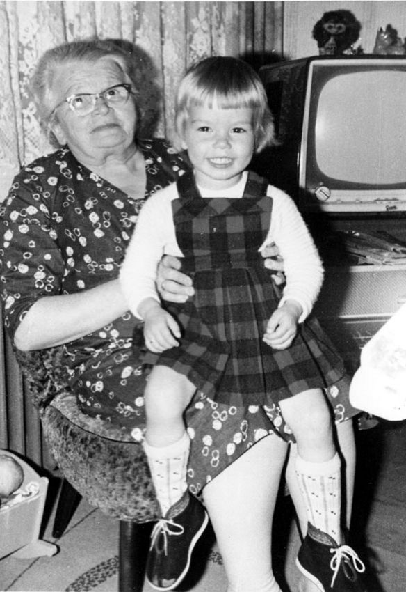 Hier sitzt Brunhilde 1959 bei der Oma, die einen tollen Schwarz-weiß-Fernseher hatte.