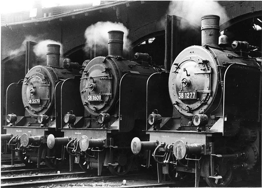 Das Bild zeigt die Dampfloks 38-3579, 38-1609 und 38-1277 am 10. Oktober 1954