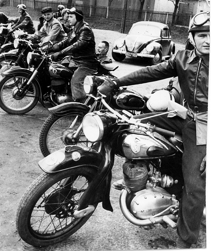 Fahrer mit Motorrad-Gespannen als Teilnehmer an der ADAC-Fahrt in Fürth 1953