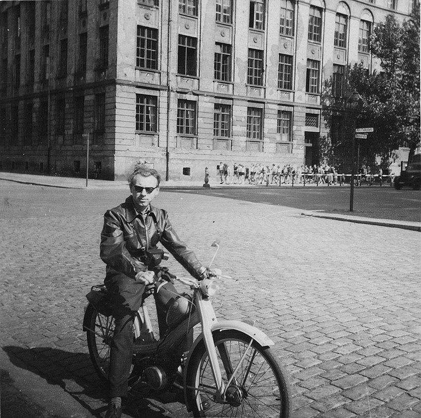 Der stolze Besitzer der NSU-Quickly lässt sich am 02.09.1956 ablichten