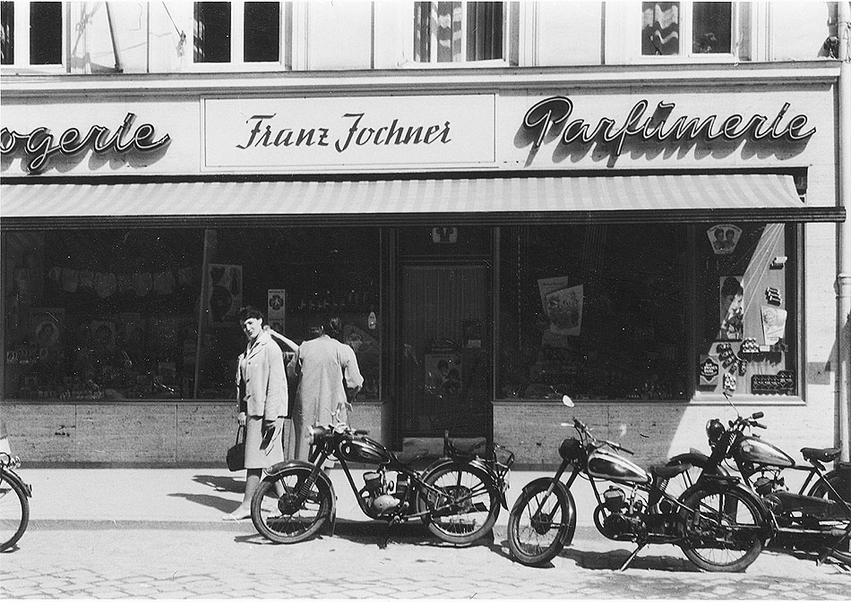 Die Fahrer dieser Motorräder suchen wohl in der Parfümerie eine Kleinigkeit für ihre Liebchen