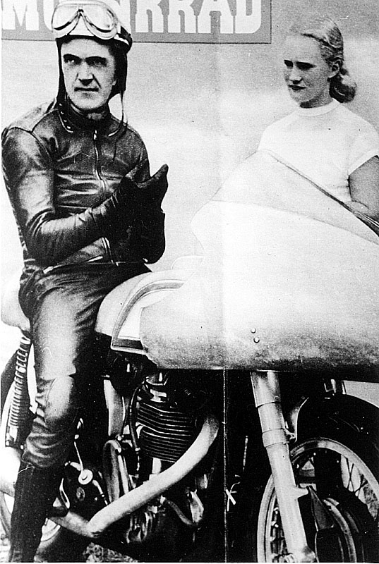Ein bestimmt bekannter Rennfahrer posiert mit seiner Norton auf dem Titelblattausschnitt meiner alten Fachzeitung