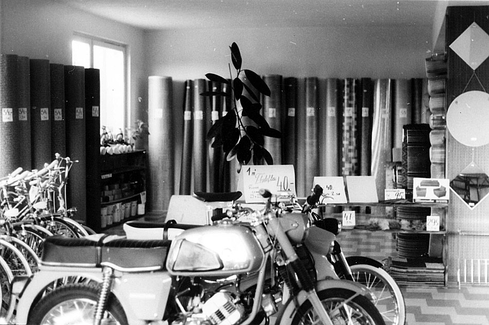 Teppichboden, Fahrräder und Mopeds gehören in diesem Laden zum Verkaufsprogramm