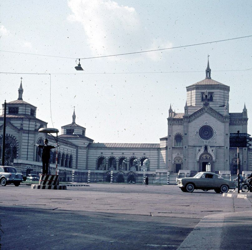 Welche Automarke fährt denn hier im Mailand des Jahres 1956 am Polizisten vorbei ?