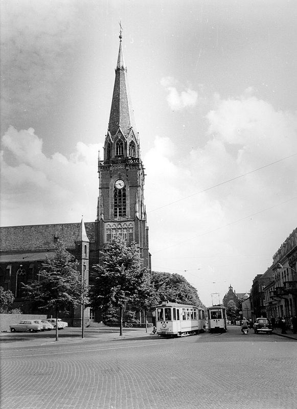 Straßenbahnen und Autos im sonnigen Krefeld der Fünfziger