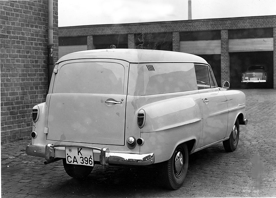 Opel Olympia Rekord in der besonderen Ausbauvariante für Geschäftsleute auf dem Werkshof des Fahrzeugausstatters