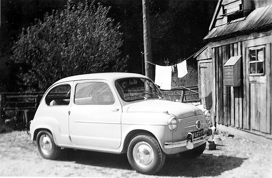 NSU Fiat Jagst 600 vor einem alten Bauernhaus