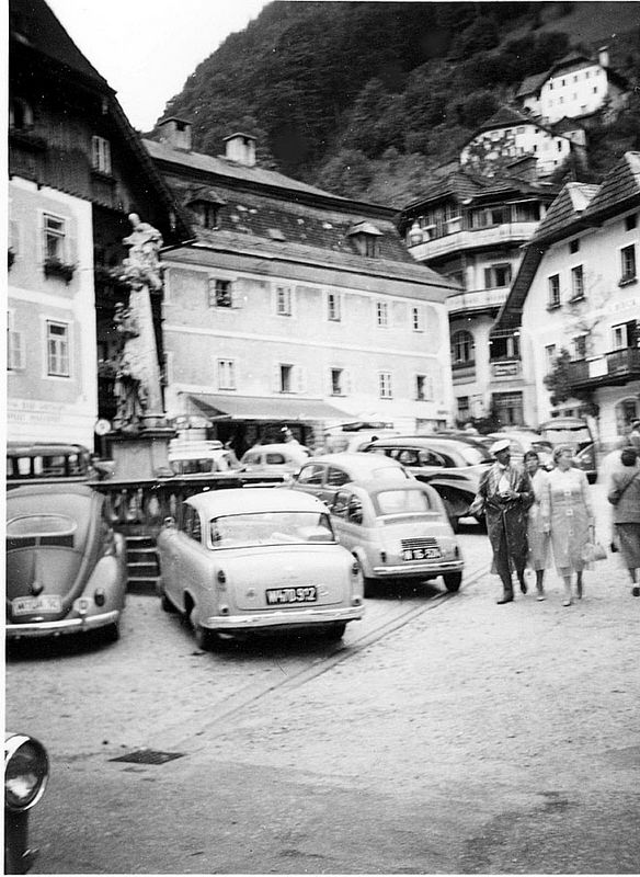 Innenstadtparkplatz in Österreich u.a. mit Goliath, Käfer und Fiat 500