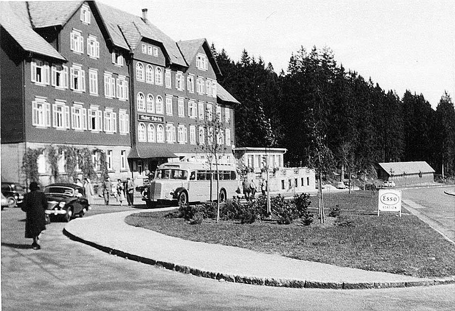 Goliath GP 700V und Mercedes Bus vor einem Hotel