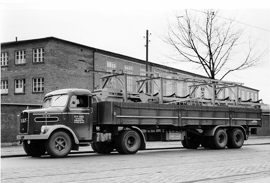 MAN Diesel Sattelzug mit Stahlteilen beladen auf der Fahrt zum Kunden