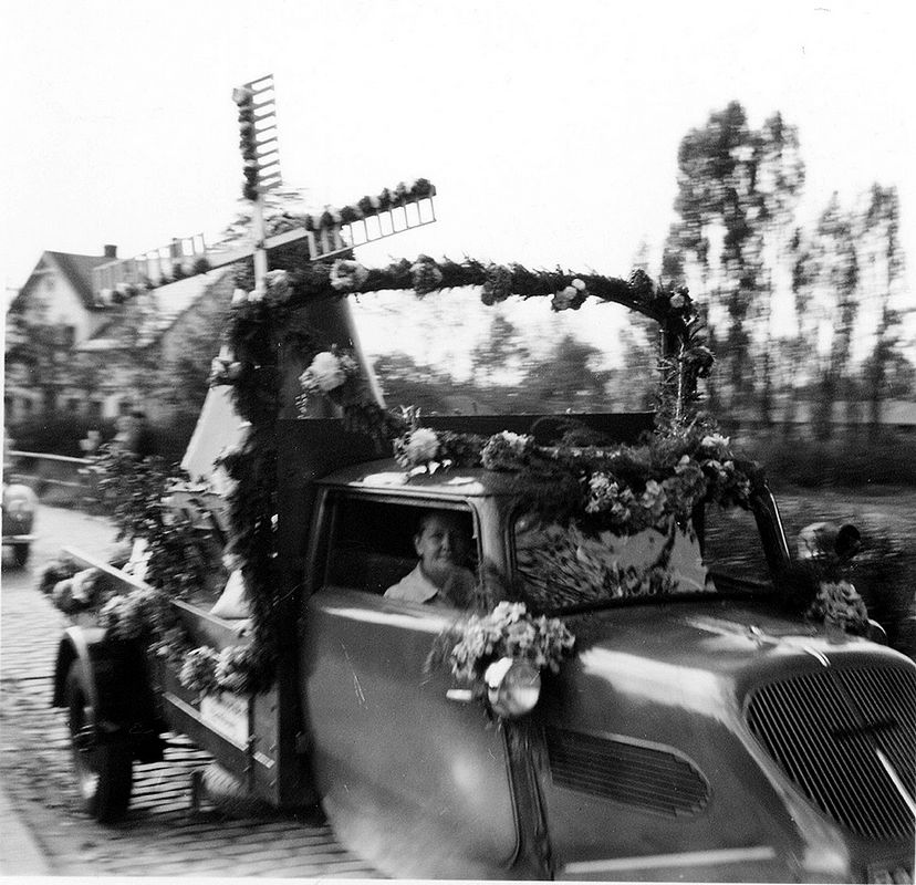Für Festumzug geschmückter Tempo Hanseat im Jahre 1950