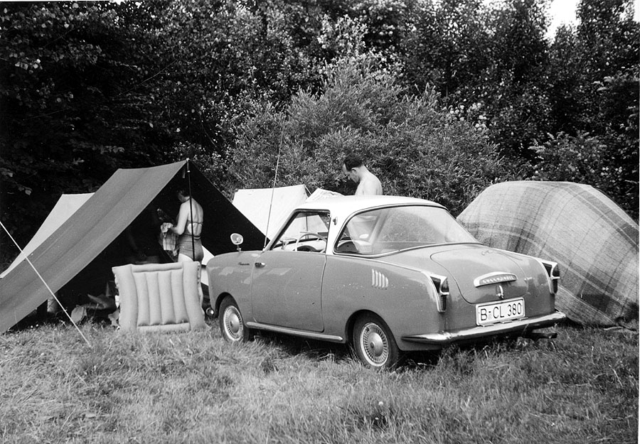 Ein Goggomobil 250 TS Coupé hat die Camper auf den Zeltplatz gebracht
