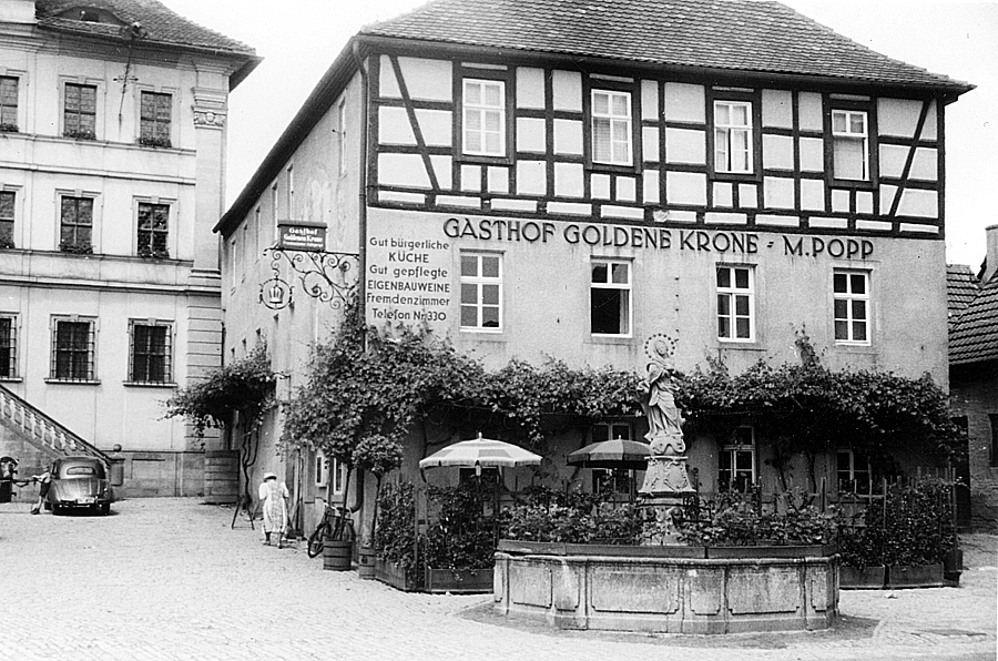 Vor dem Gasthof Goldene Krone in Iphofen parkt ein DKW.