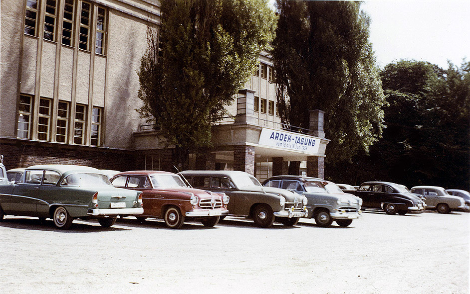 Die Teilnehmer an der ARDEK-Tagung sind im Juni 1958 mit interessanten Automarken vorgefahren.