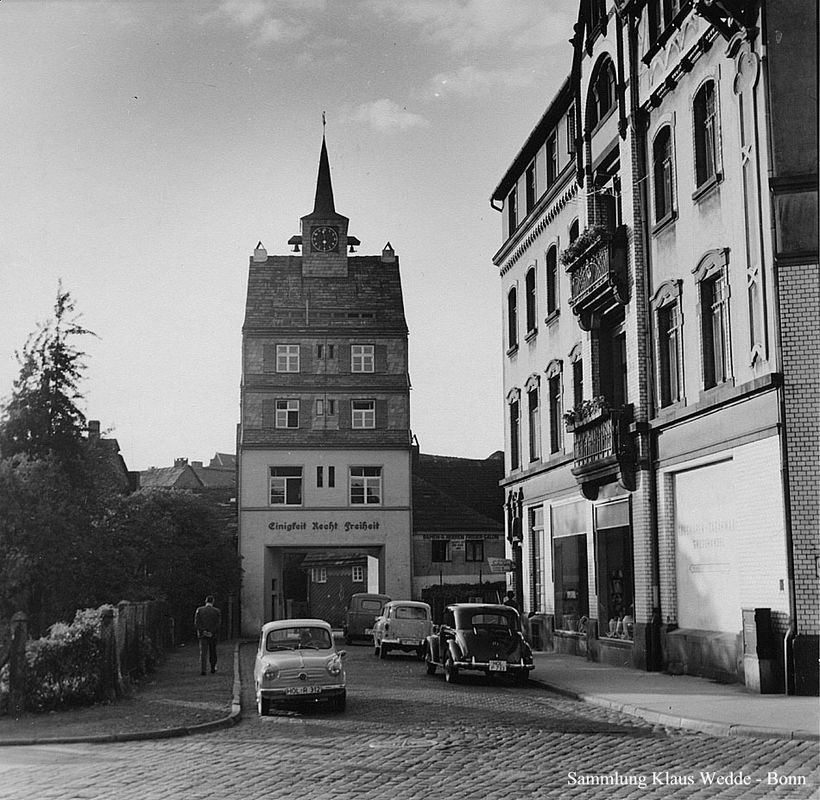 Der Turm ist das "Reichspräsidentenhaus" in Holzminden. Über der Toröffnung steht geschrieben: "Einigkeit - Recht -Freiheit".