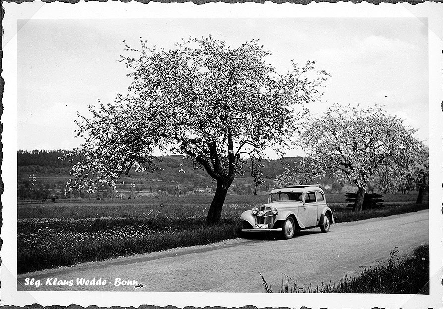 Ein schöner Trumpf Junior gesellt sich am 01.05.1952 zur besonders schönen Kirschblütenzeit.