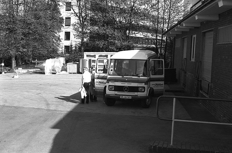 Abfahrt mit Mercedes O308 nach der feuchtfröhlichen Besichtigung der Krombacher Brauerei am 14.05.1980