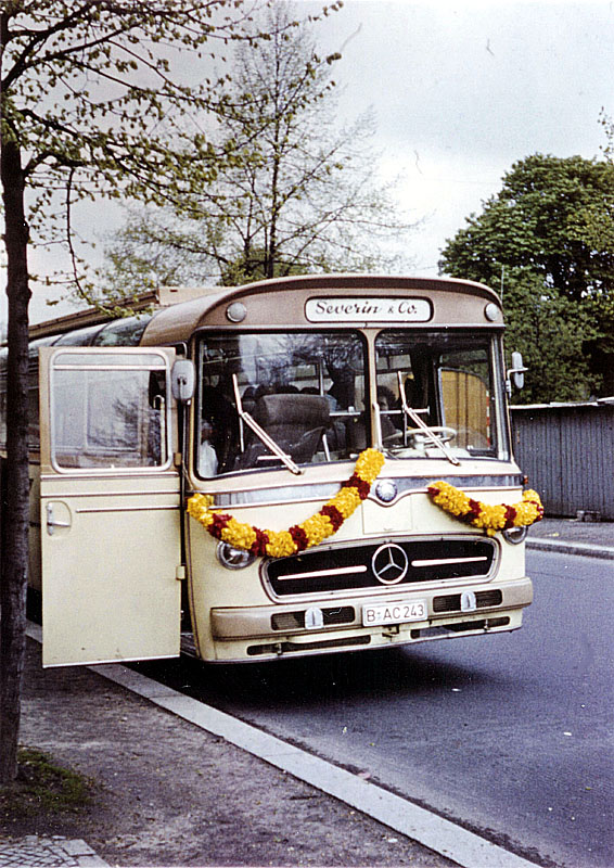 Mit dem festlich geschmückten Berliner Mercedes-Bus, B-AC 243, von Severin & Co. auf Tour