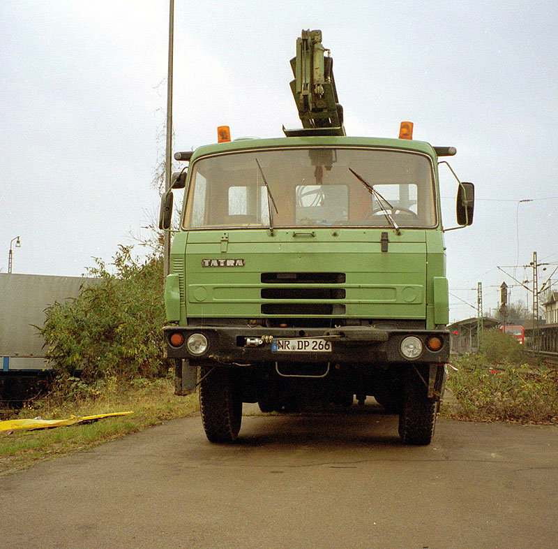 Dieser Tatra-Lkw steht im März 2003 am Bahnhof Bonn-Beuel auf der Laderape