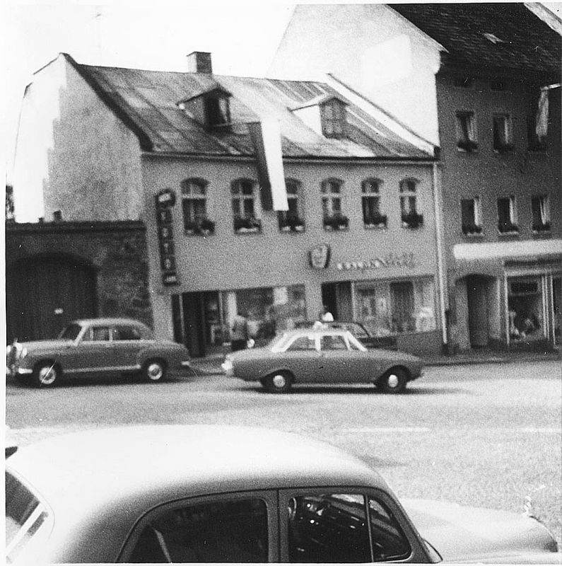 Bei diesem Foto blickt man über einen Mercedes Ponton auf einen weiteren Mercedes und einen Ford 17m "Badewanne"