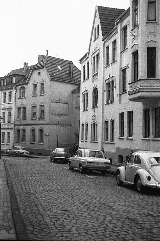 VW Käfer, DKW F102, Opel Rekord und Renault Dauphine 1964 in der Albrechtstraße, Lüdenscheid / Sauerland
