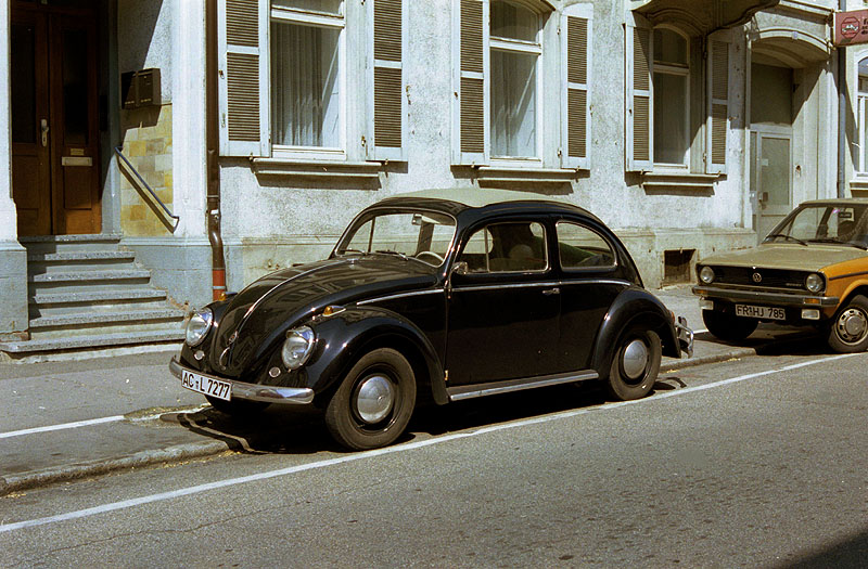 Der Aachener VW Käfer 1200 hat 1986 einen Bordsteinparkplatz in Freiburg gefunden
