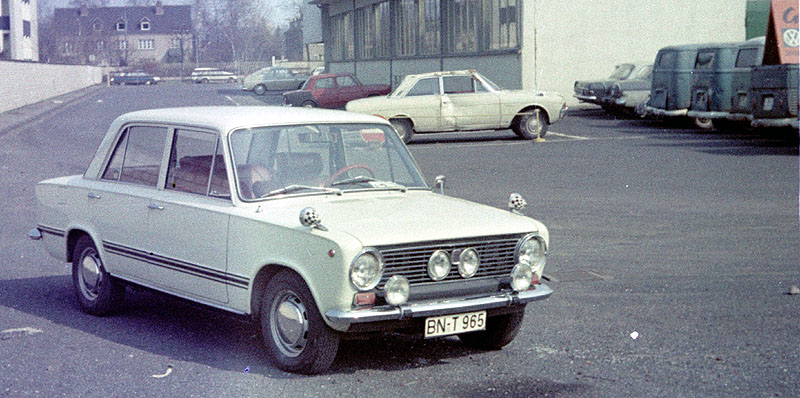Der Fiat 124 (60 PS) meines Bruders steht 1967 auf dem Werksgelände von VW Fleischhauer in Bonn