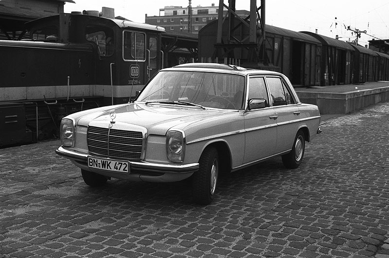Mein zuverlässiger Mercedes Benz 200D "Strich 8" hat am 2. Juni 1980 im Güterbahnhof Bonn-Beuel einen Fototermin