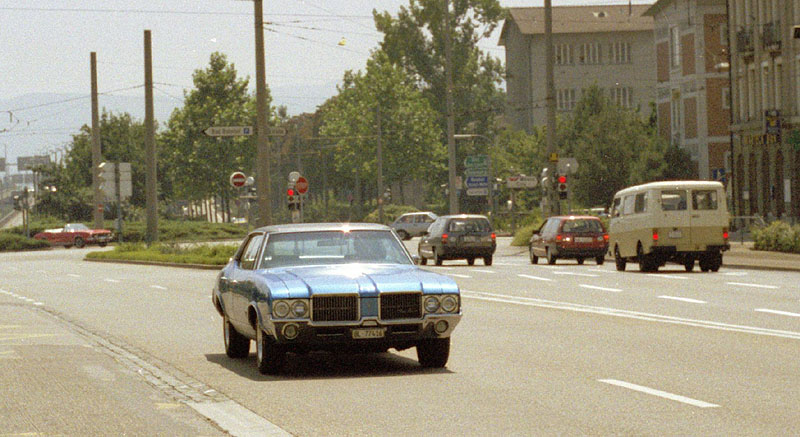 Ein schöner amerikanischer Straßenkreuzer begegnet mir Mitte der Achtziger in Basel/Schweiz