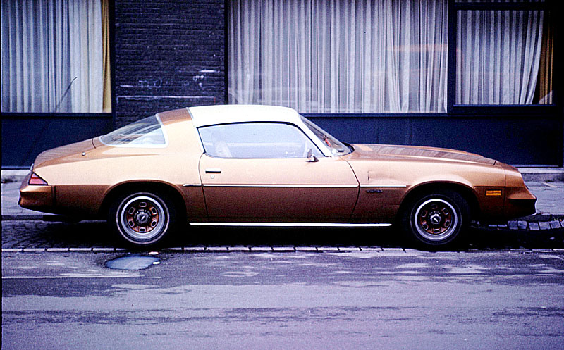 Ein schöner Pontiac Firebird steht 1980 in Düsseldorf (in der Filmserie Wagen von Detektiv Rockford)
