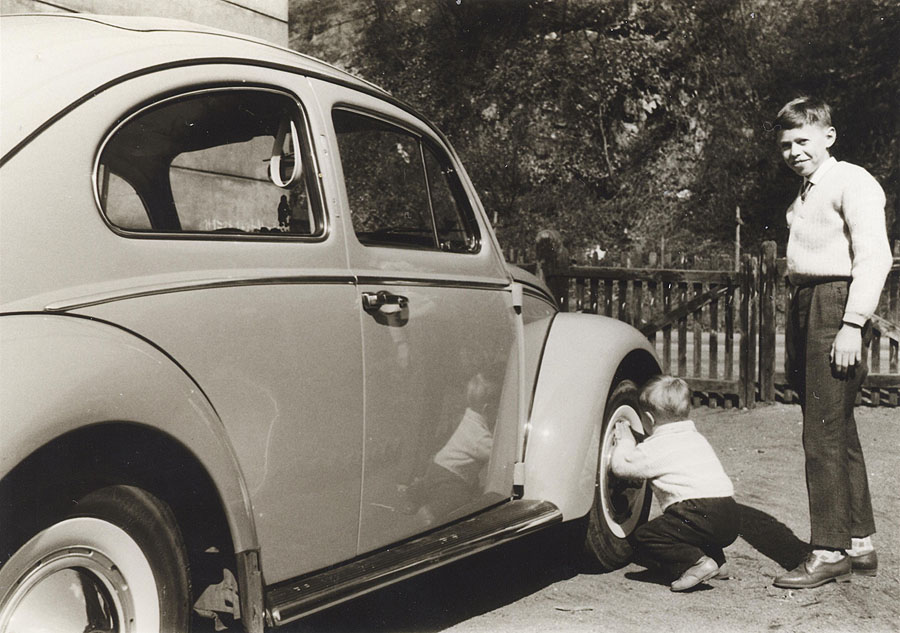 Am VW Käfer des Vaters wird Verkehrspanne gespielt