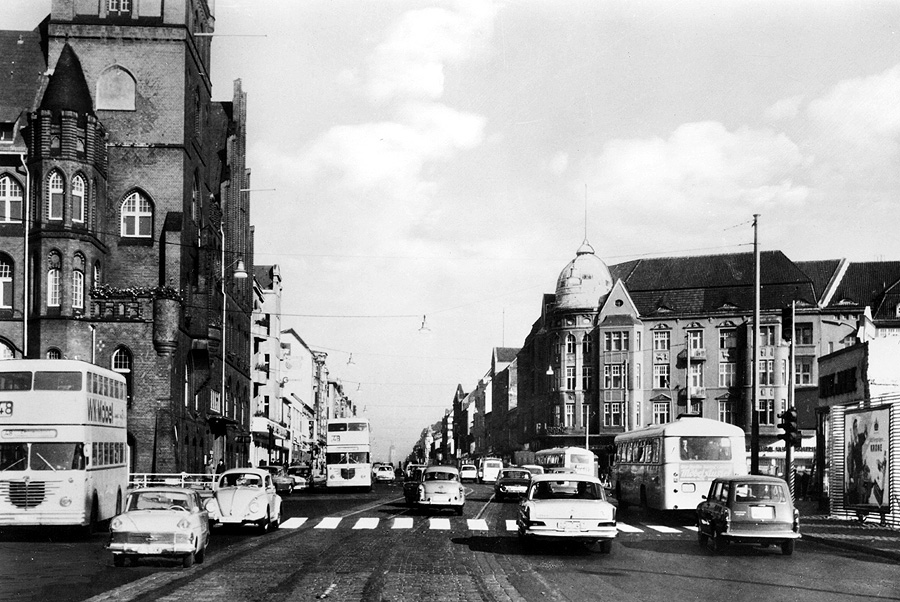 Im sonnigen Berlin sind in dieser Straßenszene neben den Berliner Bussen die Marken Mercedes, Opel und VW zu entdecken