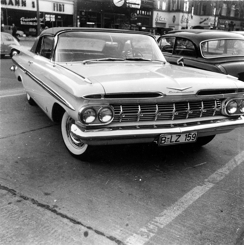 Das ist ein Unterschied im Aussehen, ein Chevrolet Cabrio neben einem Hansa