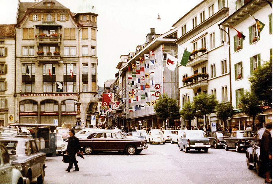 In einer Züricher Straßenszene sind hier unter anderem Fahrzeuge der Marken Opel, Fiat, Peugeot und VW zu entdecken