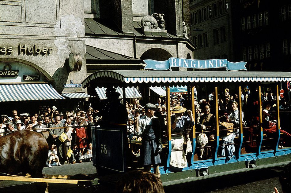 Gut besetzt ist der Pferdebahnanhänger 58 der Ringlinie.