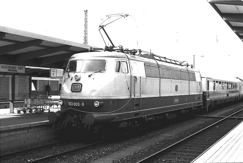 103 003 am 28.09.84 in Augsburg Hbf, nach Rekordfahrt mit 250 km/h