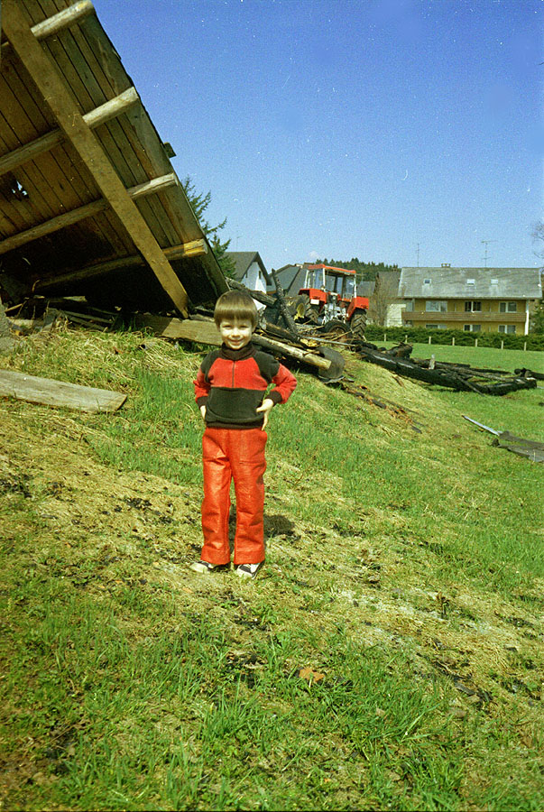 Mein Sohn Thomas musste unbedingt beim Wegräumen der Trümmer zusehen.